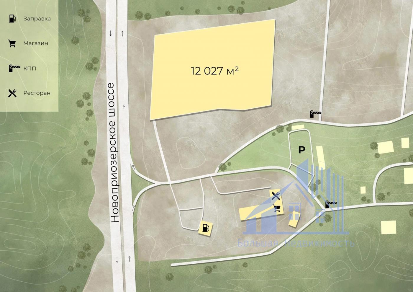 Участок 1,2 га находится в перспективной локации с высоким транспортным потоком – на Новоприозерском шоссе, одном из ключевых направлений выезда из Санкт-Петербурга.